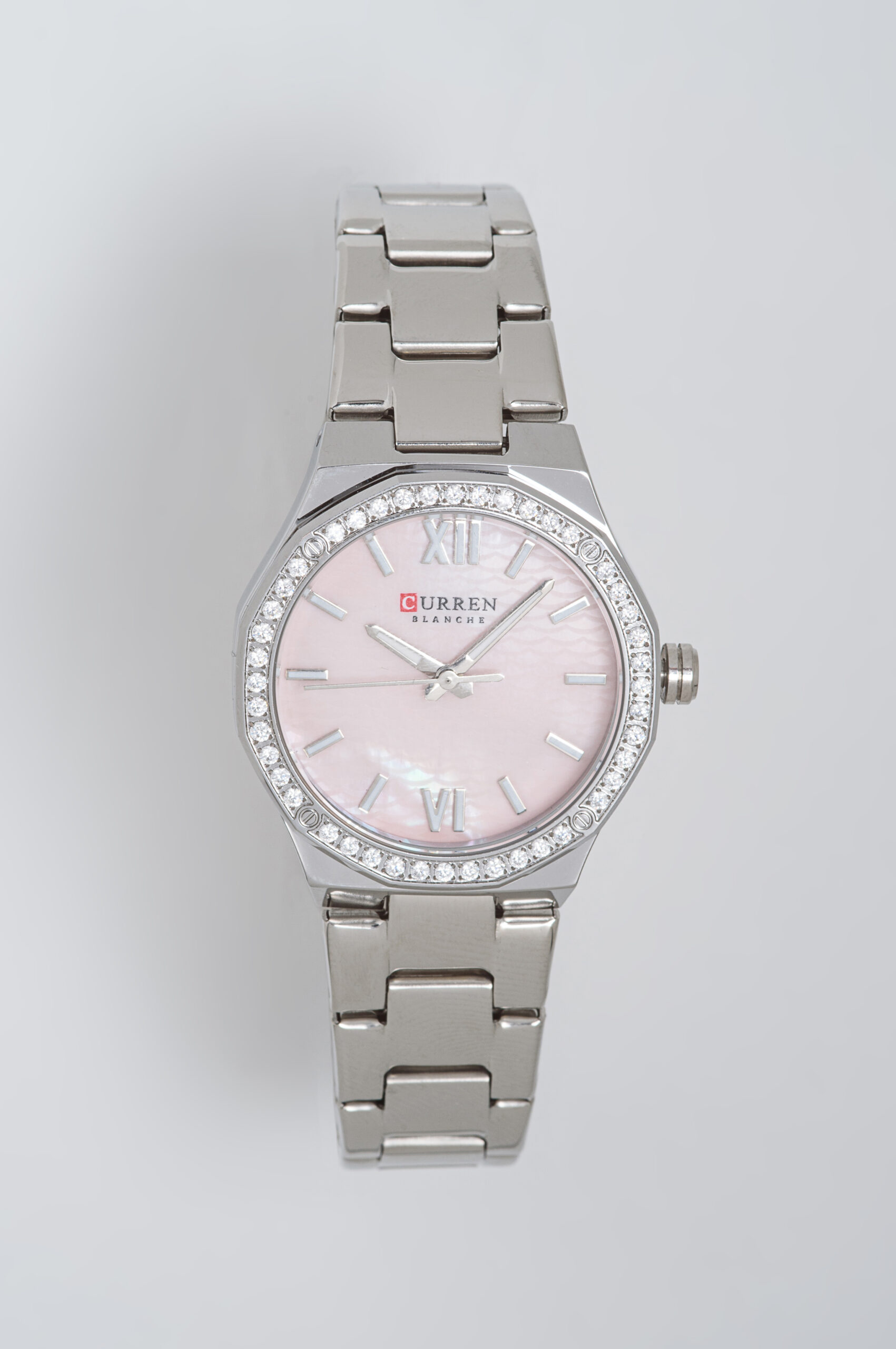 Bronce Ασημένιο με Ροζ Καντράν Ρολόι Με Μπρασελέ Ατσάλι