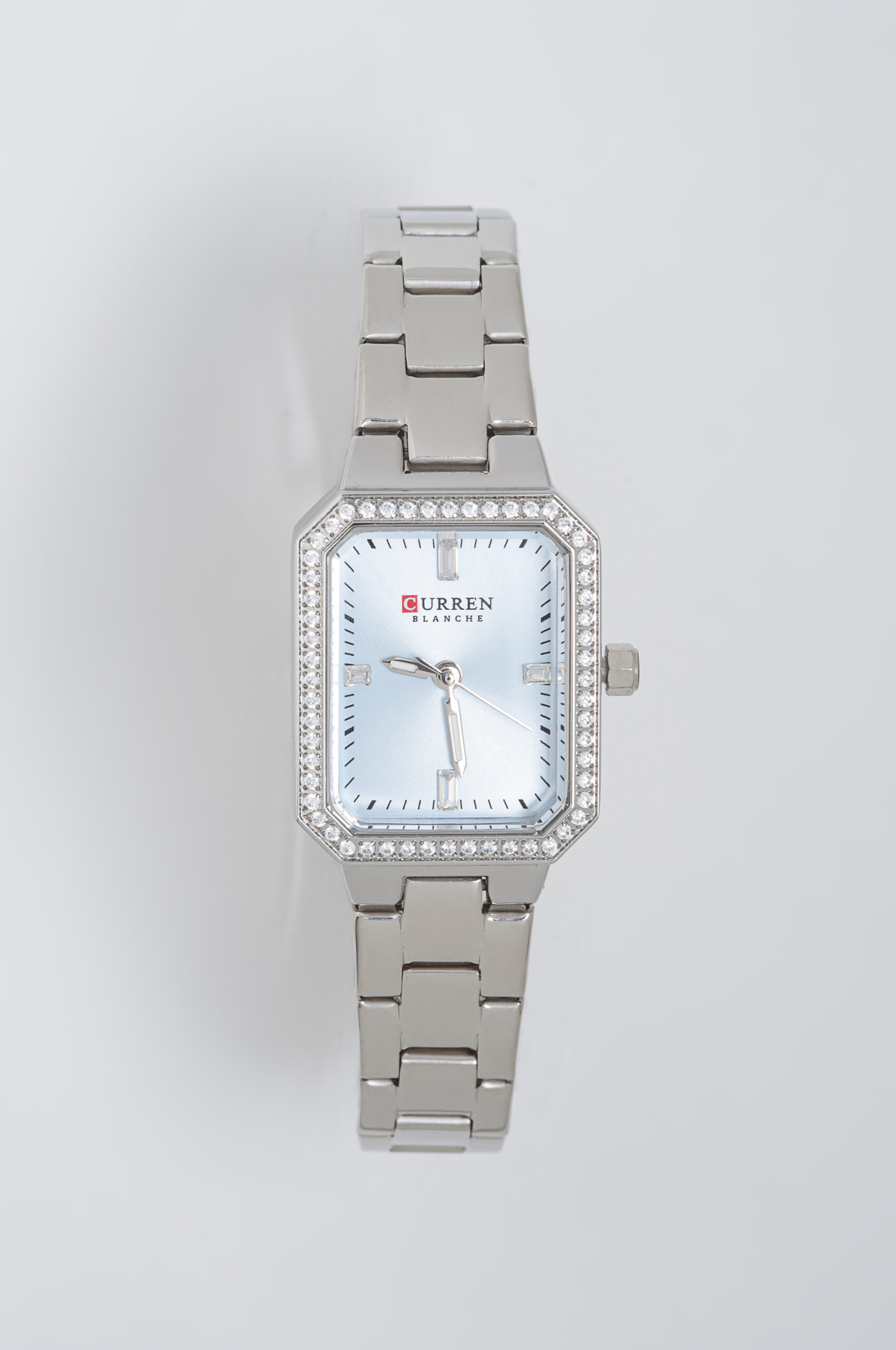 69624|Lila Ασημένιο με Γαλάζιο Καντράν Ρολόι Με Μπρασελέ Ατσάλι