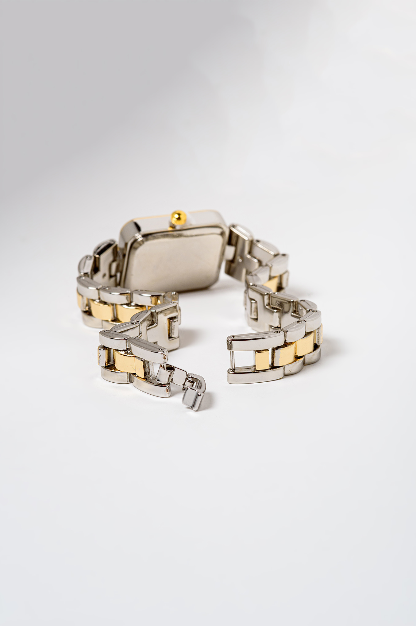 Rojo Χρυσό/Ασημένιο με Λευκό Καντράν Ρολόι Με Μπρασελέ