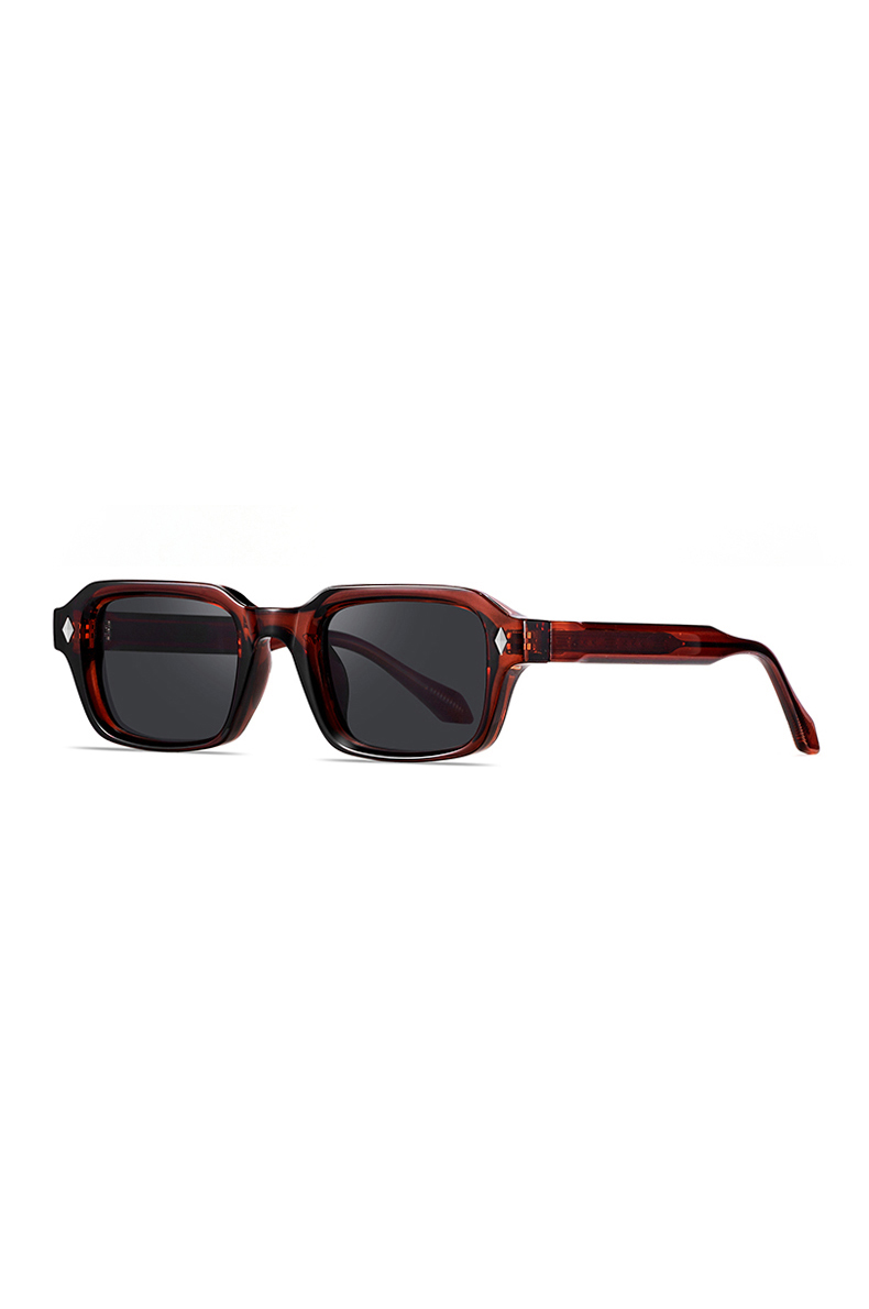 Τετράγωνα πάστινα γυαλιά με πάστινους βραχίωνες, Α’ ποιότητας, υψηλής αισθητικής, ιταλικής κατασκευής. Συνοδεύονται από πανάκι καθαρισμού και σκληρή θήκη για προστασία κατά την μεταφορά. Απορροφητικότητα φακών UV 400, που ακολουθεί την Ευρωπαϊκή οδηγία 89/86/EEC και είναι συμμορφωμένο με το πρότυπο : NF EN:/2005/A1:2007.